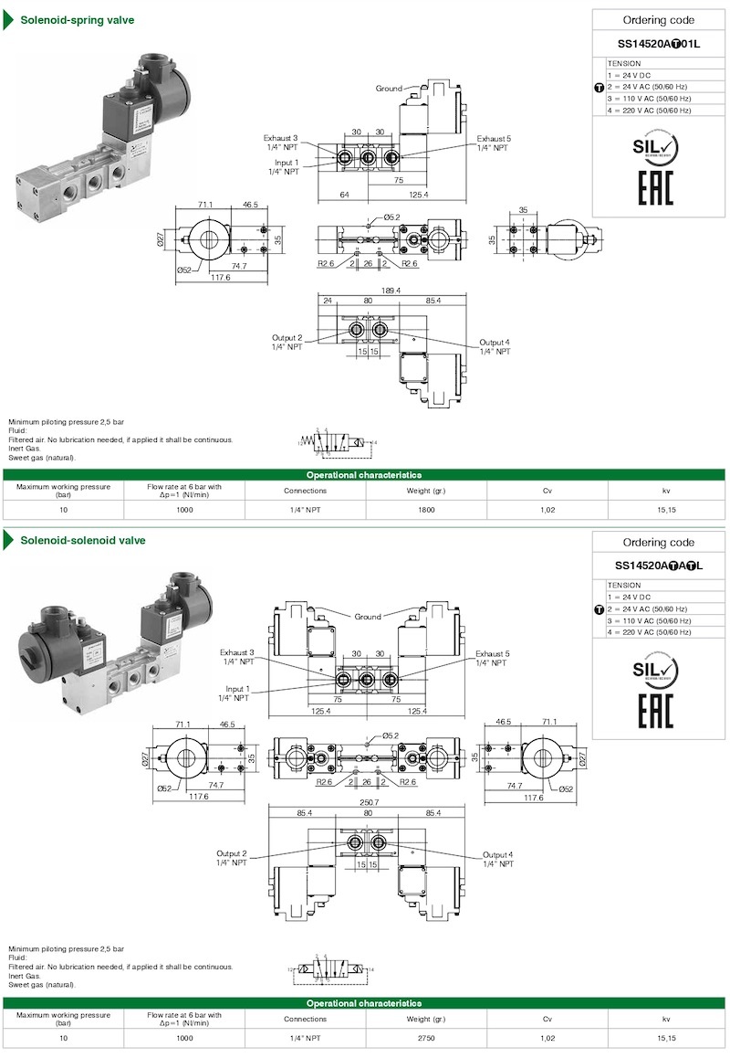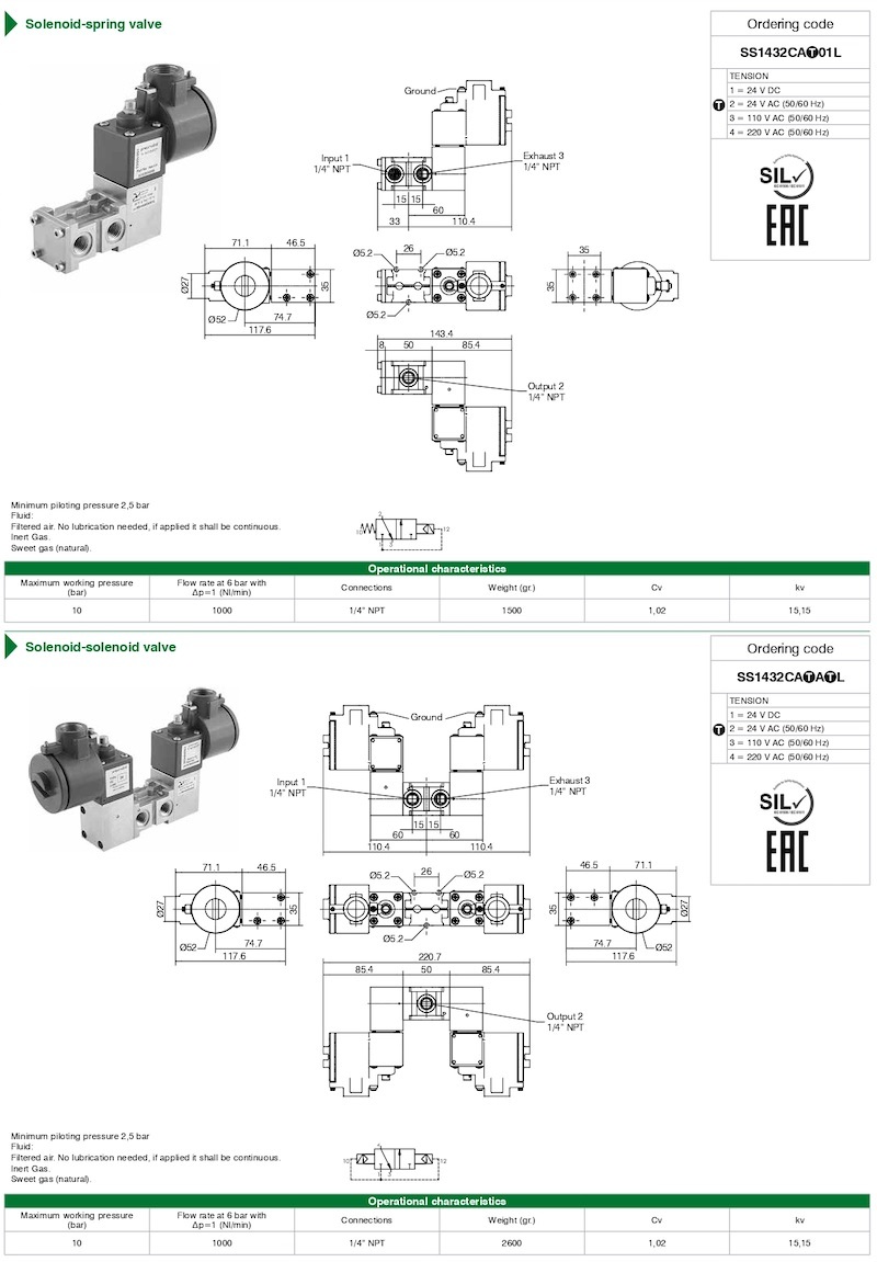 Pneumax solenoid valves have 1/4” NPT connections with 1000Nl/min maximum flow rate.