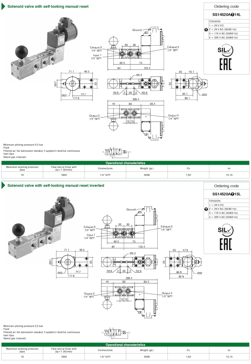 Solenoid valves 3/2 – 5/2, 1/4″ NPT
