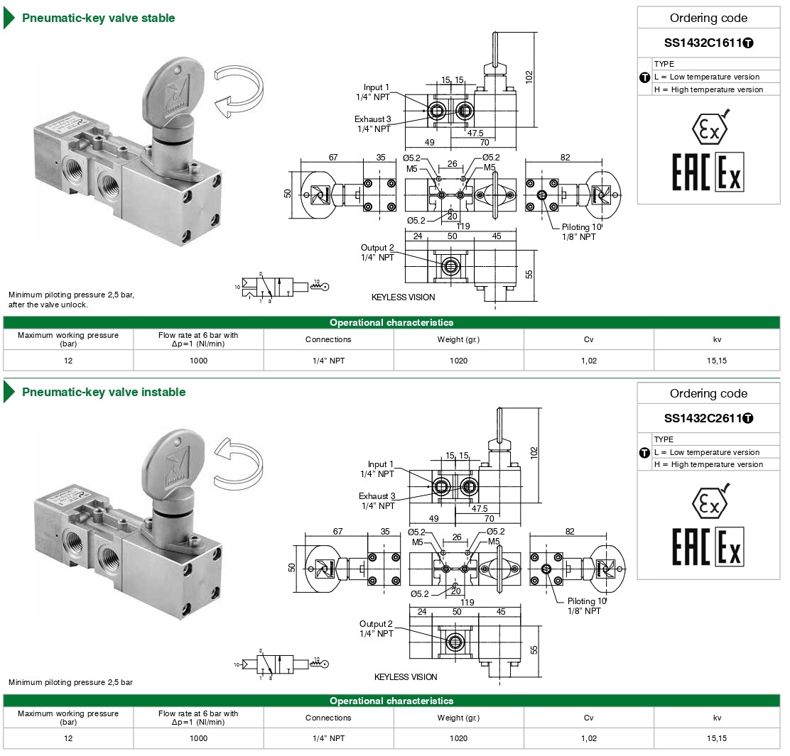Stainless steel brand series have been engineered and developed to meet process automation and Oil & Gas severe service requirements, where material performances, product reliability and health and safety issues are critical elements. As a result, Pneumax products are perfectly suitable to work with sweet gas media and corrosive / aggressive gases.